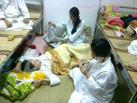 Còn chị Lương (Vĩnh Phúc) đi chăm mẹ bị tai biến cũng tranh thủ kê giường ra ngủ trưa ở khuôn viên viện Sức khỏe tâm thần Quốc gia. Chị bảo: Buổi trưa, buổi tối chúng tôi đều nằm ở ngoài trời hết. Dù biết là sương, là lạnh nhưng phải làm sao bây giờ. Tôi ở đây đã 20 ngày rồi. Gia đình nghèo, không có tiền, chúng tôi là nông dân nên làm gì có đồng ra đồng vào. Hai chị em tôi phải thay nhau trông mẹ. Một người đêm ở trong phòng với mẹ, một người phải nằm ngoài trời thôi.