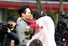 Trước sự chứng kiến của rất nhiều thành viên trong đoàn làm phim và cả khán giả, Trương Trí Lâm đã quỳ gối đeo chiếc nhẫn cưới vào tay vợ với sự cổ vũ nhiệt tình của tất cả mọi người. Hành động này của chồng khiến Viên Vịnh Nghi rơi nước mắt vì cảm động.