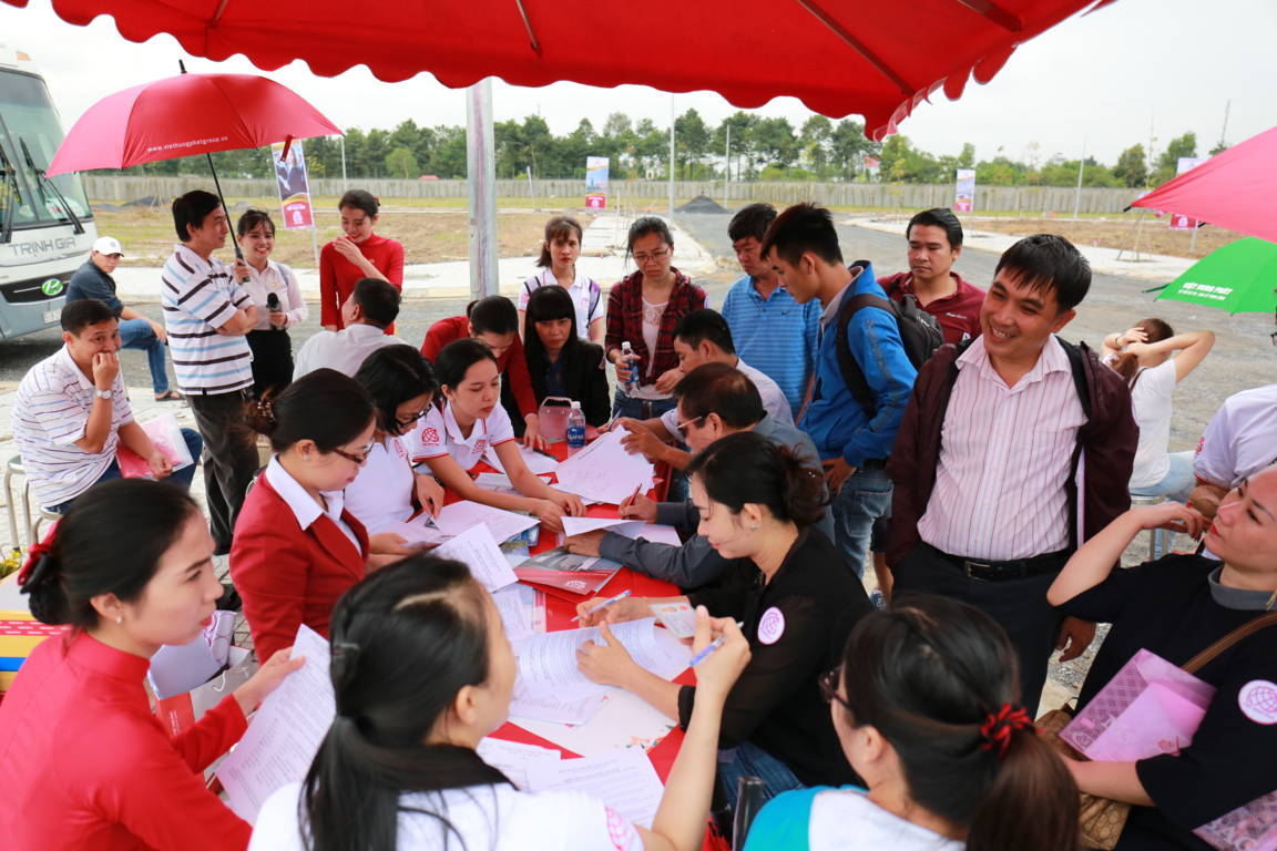 Khách hàng hân hoan tiến hành làm thủ tục nhận đất ngay tại dự án
