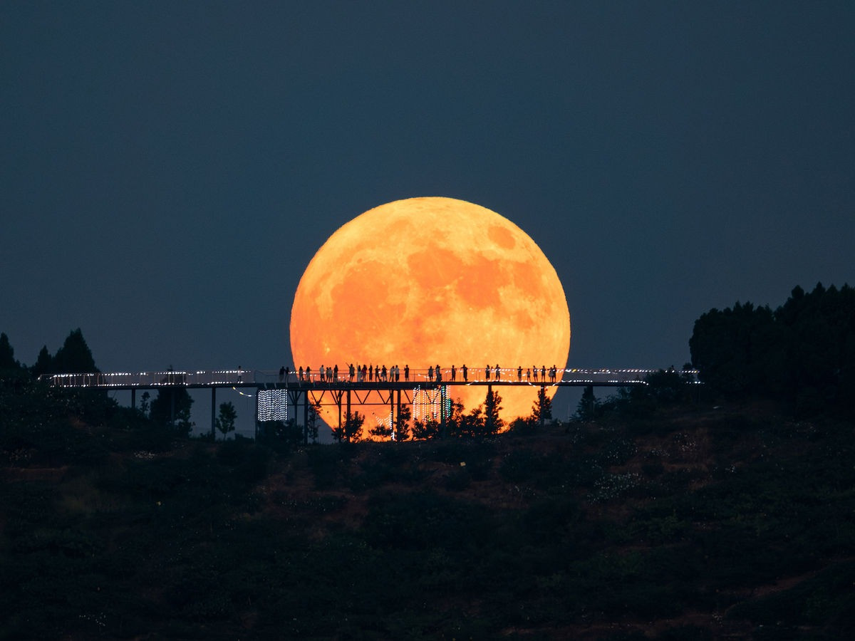 Mặt trăng mọc là thời điểm tốt nhất để quan sát kích thước lớn của siêu trăng. (Ảnh: AP)