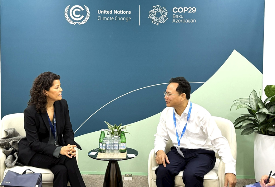 Bên lề Hội nghị COP29, ông Phạm Văn Tấn (Phó Cục trưởng Cục Biến đổi khí hậu, Bộ Tài nguyên và Môi trường) – Phó Trưởng đoàn Đàm phán của Việt Nam tại Hội nghị COP 29 có buổi tiếp, làm việc với bà Anne Hammill, Phó Chủ tịch Viện quốc tế về Phát triển bền vững (IISD) về các nội dung hợp tác tiềm năng trong triển khai hoạt động thích ứng với biến đổi khí hậu, xây dựng thị trường các-bon.