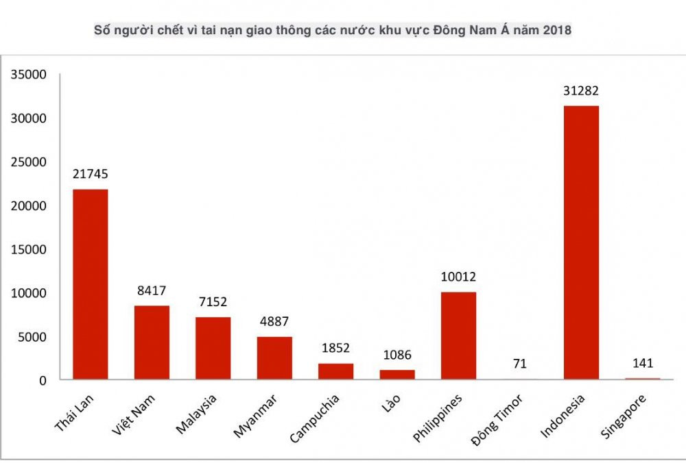 Theo Báo cáo Tình trạng Toàn cầu năm 2018 về An toàn Đường bộ của Tổ chức Y tế Thế giới (WHO), Indonesia là quốc gia Đông Nam Á có số lượng người chết do tham gia giao thông cao nhất năm 2018 với 31.282 trường hợp, nhưng tỷ lệ thiệt mạng do tai nạn giao thông ở Thái Lan lại đứng đầu khu vực, lên tới 32,7/100.000 người.