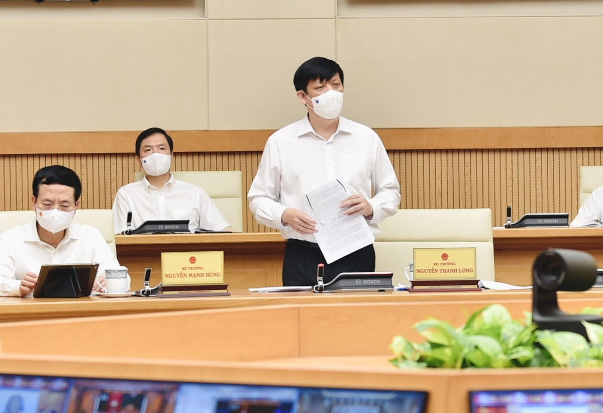 Bộ trưởng Bộ Y tế Nguyễn Thanh Long báo cáo tại Hội nghị. (Ảnh: VGP)