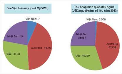 Theo chuyên gia kinh tế Phạm Tất Thắng, so sánh giá điện của Việt Nam hiện nay với các nước là cũng là khập khễnh, bởi thu nhập bình quân đầu người của Việt Nam đến giờ mới chỉ đạt hơn 2.000 USD/người/năm, trong khi của Australia năm 2013 đã là 67.458 USD/người/năm, Đức là 46,269 USD/người/năm, Nhật Bản là 38.634 USD/người/năm. Các nước có giá điện xấp xỉ Việt Nam như Indonesia, Malaysia thì cũng có thu nhập bình quân đầu người cao hơn ta nhiều, là 3.475 USD/người/năm và 10.538 USD/người/năm…