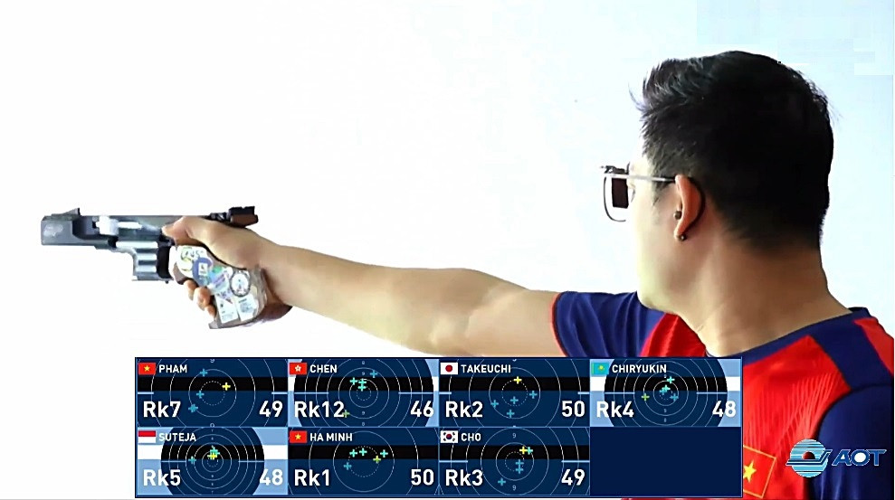 Trong loạt bắn đầu tiên, Vũ Tiến Nam xuất trận với thành tích 566 điểm, tạm xếp thứ 3 trong số 7 người thi đấu cùng lượt. Ở loạt cá nhân thứ hai, Hà Minh Thành và Phạm Quang Huy đều tham gia. Mục tiêu của họ là phải duy trì thông số trong nhóm đủ giành huy chương, thậm chí phải làm tốt hơn để có lợi thế.