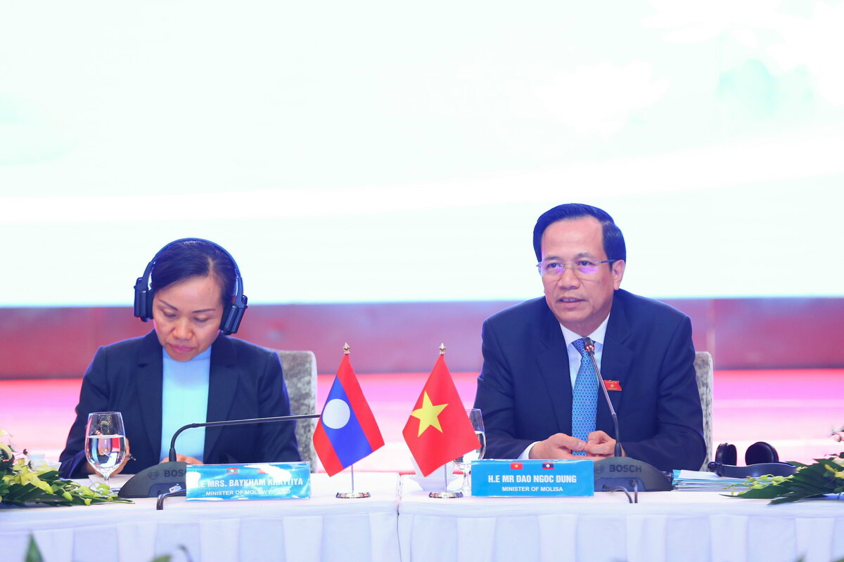 Bộ trưởng Đào Ngọc Dung và Bộ trưởng Bộ Lao động và Phúc lợi Xã hội Lào tại hội nghị.