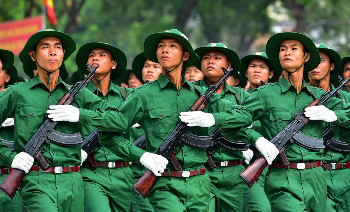 Bộ đội Việt Nam tập luyện cho lễ diễu binh, diễu hành kỷ niệm 50 năm Ngày giải phóng miền Nam, thống nhất đất nước.