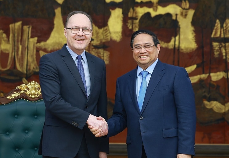 Thủ tướng Phạm Minh Chính tiếp ông Gennady Bezdetko, Đại sứ Liên bang Nga tại Việt Nam. (Ảnh: Dương Giang/TTXVN)