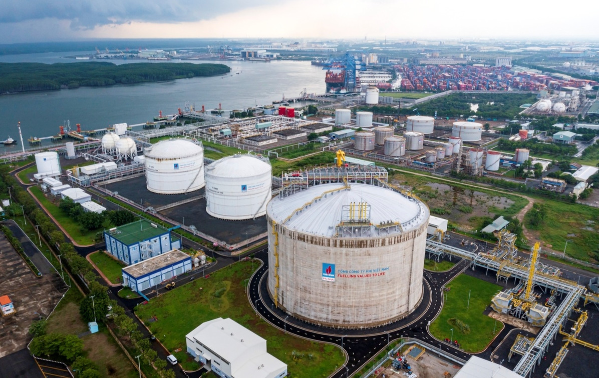 Kho LNG Thị Vải là kho chứa LNG đầu tiên và lớn nhất tại Việt Nam được PV GAS đặt tại Khu công nghiệp Cái Mép, tỉnh Bà Rịa - Vũng Tàu. (Ảnh: B.L)