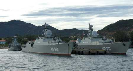 2 tàu hộ vệ lớp Gepard 3.9 HQ-011 Đinh Tiên Hoàng và HQ-012 Lý Thái Tổ của hải quân Việt Nam. Ảnh ANTĐ |
