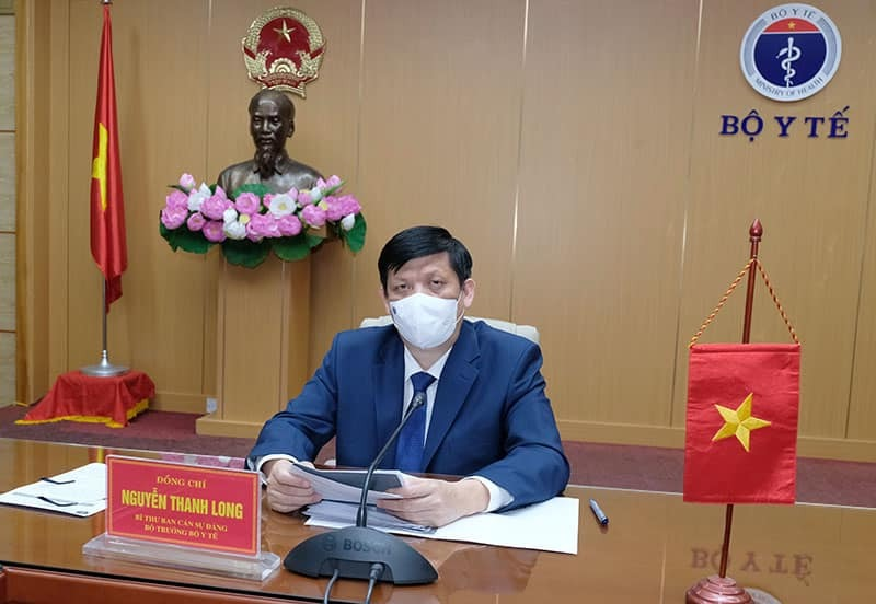 Bộ trưởng Bộ Y tế Nguyễn Thanh Long trong buổi họp với COVAX Facility và lãnh đạo Y tế của một số nước tối 31/5.