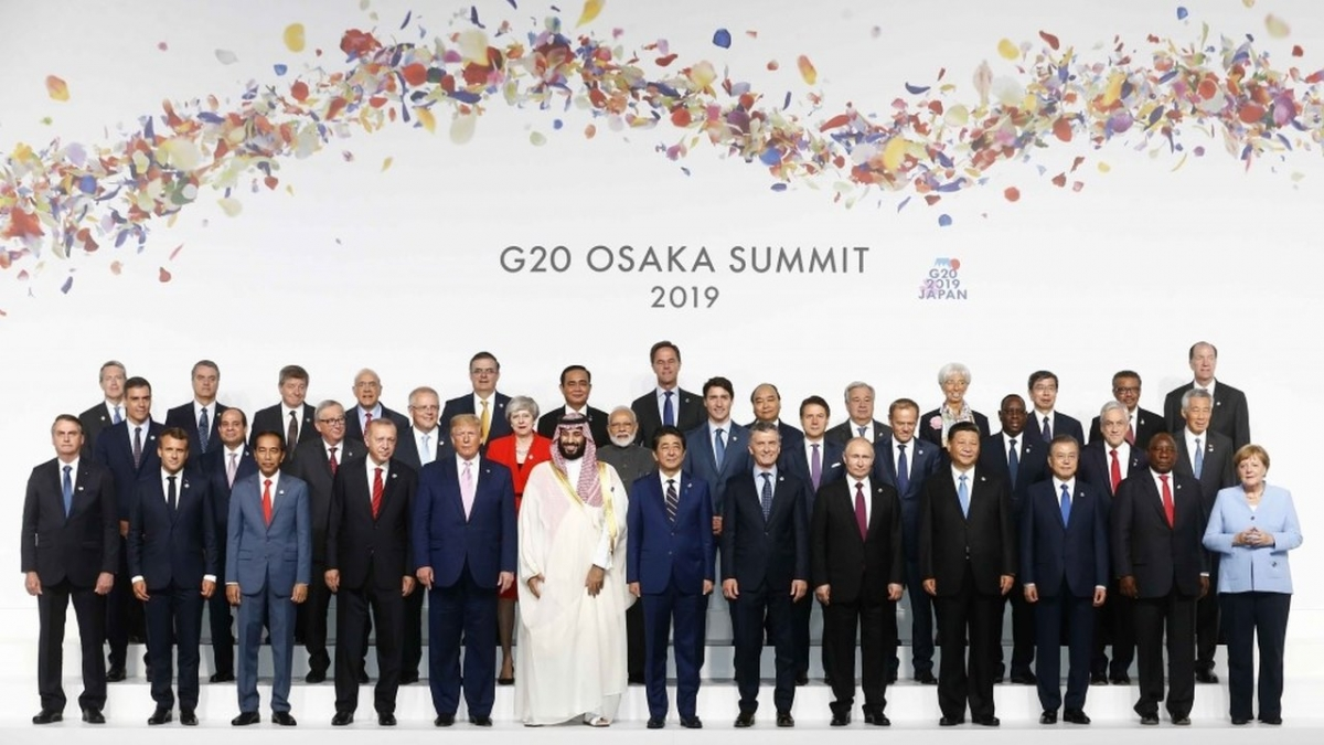 Thủ tướng Nguyễn Xuân Phúc chụp ảnh cùng lãnh đạo G20 tại Osaka, Nhật Bản năm 2019. (Ảnh: TTXVN)