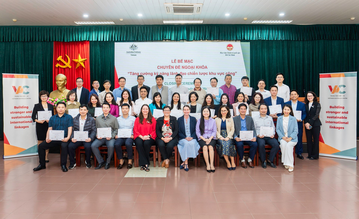 Trong tháng 3/2025, Trung tâm Việt - Úc phối hợp với Học viện Chính trị Quốc gia Hồ Chí Minh tổ chức hai chuyên đề ngoại khóa “Tăng cường kỹ năng lãnh đạo chiến lược khu vực công”, trang bị kỹ năng lãnh đạo và quản lý hiện đại cho hơn 80 cán bộ lãnh đạo đương nhiệm và tương lai.