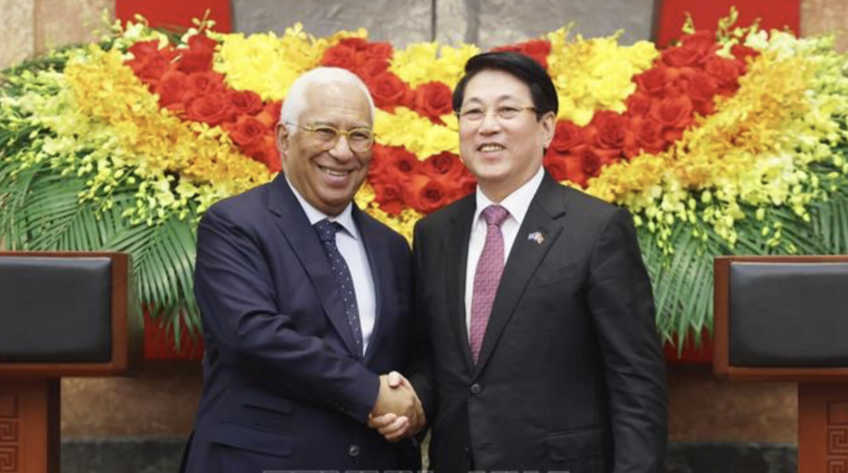 Chủ tịch nước Lương Cường tiễn Chủ tịch Hội đồng châu Âu António Costa. (Ảnh: Lâm Khánh/TTXVN)