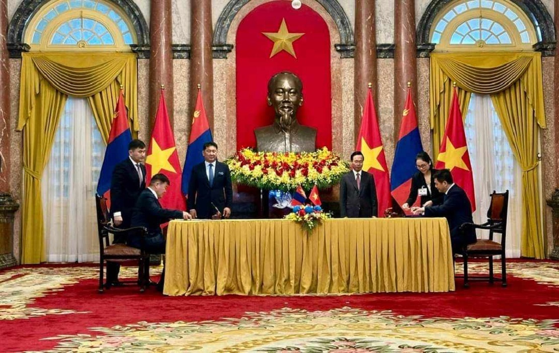 Lễ ký kết diễn ra trước sự chứng kiến của Chủ tịch nước Võ Văn Thưởng và Tổng thống Mông Cổ Ukhnaagiin Khurelsukh.