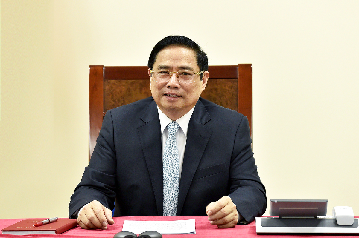 Thủ tướng Chính phủ Phạm Minh Chính điện đàm với Thủ tướng Cộng hòa Pháp Jean Castex. (Ảnh: VGP/Nhật Bắc)