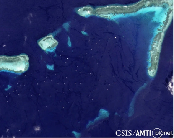 Ảnh vệ tinh cho thấy sự hiện diện của các tàu Trung Quốc ở khu vực bãi Ba Đầu thuộc quần đảo Trường Sa của Việt Nam hôm 17/10.
