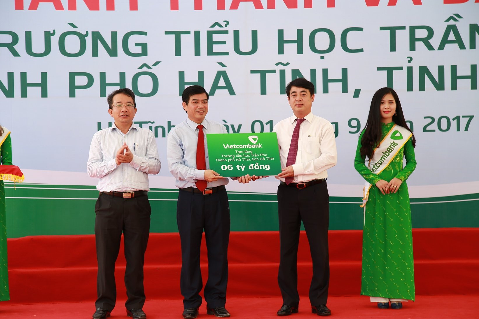 Tại buổi lễ khánh thành và bàn giao các trường học, Vietcombank đã tặng Trường Tiểu học Trần Phú (TP. Hà Tĩnh) và Trường tiểu học Thạch Long (huyện Thạch Hà, tỉnh Hà Tĩnh) mỗi trường 200 triệu đồng; tặng Trường Tiểu học Duy Nhất 1, Trường Tiểu học Hồng Phong 1, Trường mầm non Vũ Hồng (thuộc huyện Vũ Thư, tỉnh Thái Bình) mỗi trường 1 chiếc ti vi 50 inch; tặng 100 triệu đồng cho Trường THCS thị trấn Vũ Thư, huyện Vũ Thư, tỉnh Thái Bình.