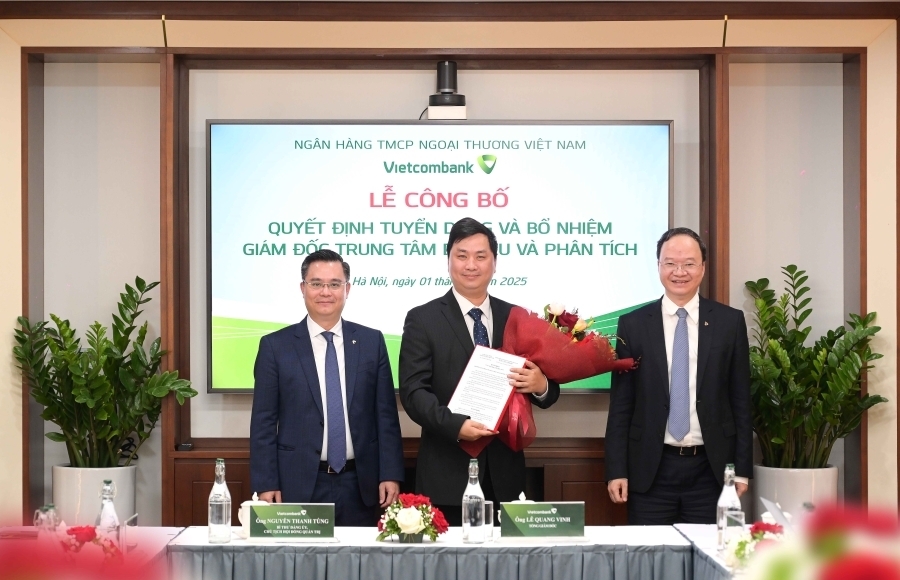 Ngày 1/4, tại Trụ sở chính 198 Trần Quang Khải, Hoàn Kiếm, Hà Nội, Ngân hàng TMCP Ngoại thương Việt Nam (Vietcombank) tổ chức Lễ công bố quyết định tuyển dụng và bổ nhiệm Giám đốc Trung tâm Dữ liệu và Phân tích.