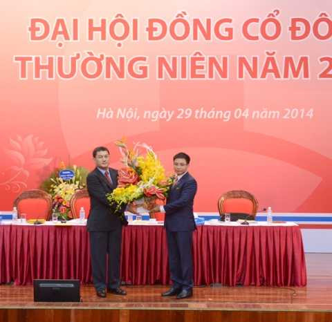 | Ban lãnh đạo gửi hoa chúc mừng HĐQT & Ban kiểm soát - Ảnh: Mạnh Thắng |