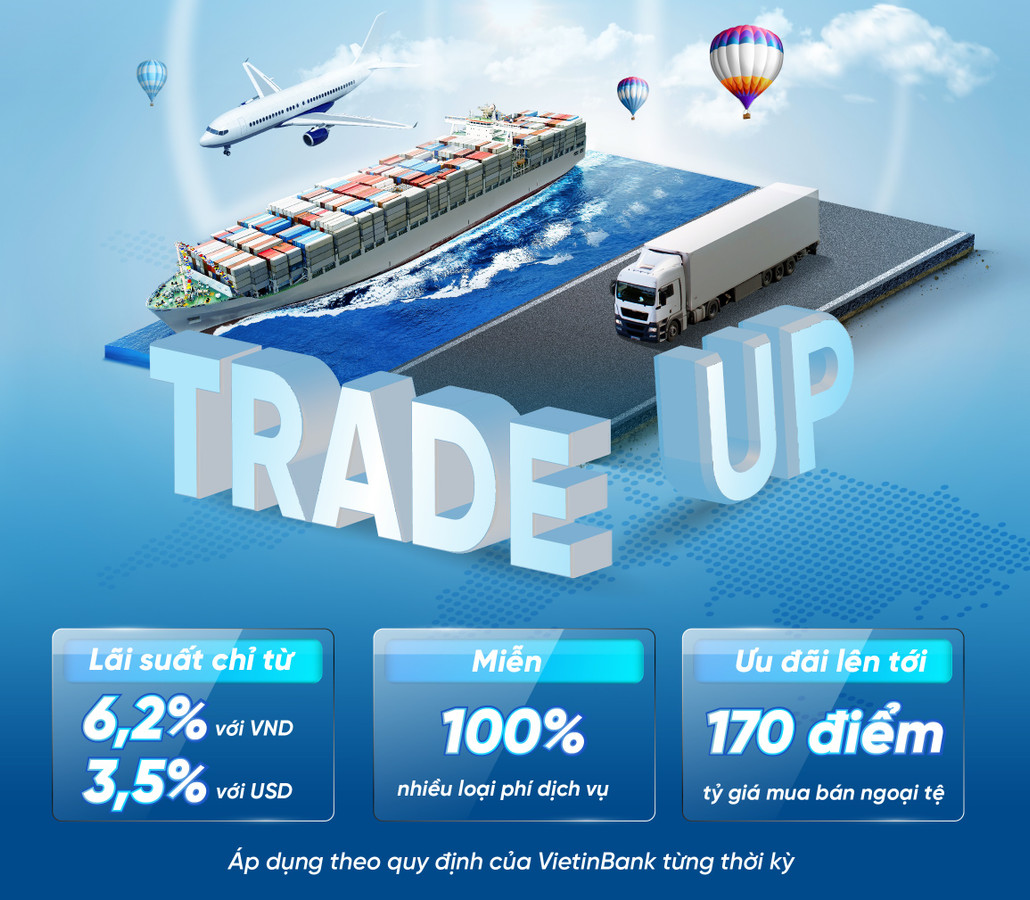 VietinBank Trade Up là gói ưu đãi hấp dẫn và toàn diện nhất mà VietinBank dành tặng KHDN XNK với mong muốn gắn kết thành công giữa ngân hàng và doanh nghiệp, hỗ trợ các doanh nghiệp duy trì ổn định hoạt động kinh doanh, phát triển và tăng cường khả năng cạnh tranh trên thị trường.