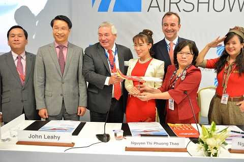 Bà Nguyễn Thanh Hà, Chủ tịch Hội đồng Quản trị Vietjet, Bà Nguyễn Thị Phương Thảo, Tổng giám đốc Vietjet và Ông John Leahy, Tổng giám đốc phát triển thương mại toàn cầu của Airbus đã ký kết hợp đồng. Việc liên tiếp đặt thêm tàu bay cho thấy sự tăng trưởng đột phá của hãng hàng không Vietjet cả về lượng khách vận chuyển và sự phát triển của đội bay và mạng đường bay.