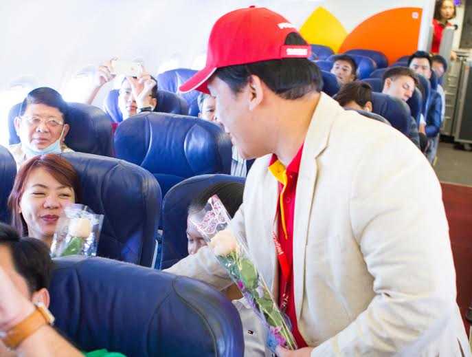 Trên những chuyến bay hoa hồng, hành khách được thưởng thức giai điệu âm nhạc dễ thương, những lời chúc mừng ngọt ngào và đầy tình cảm chân thành từ đội ngũ phi hành đoàn của Vietjet.