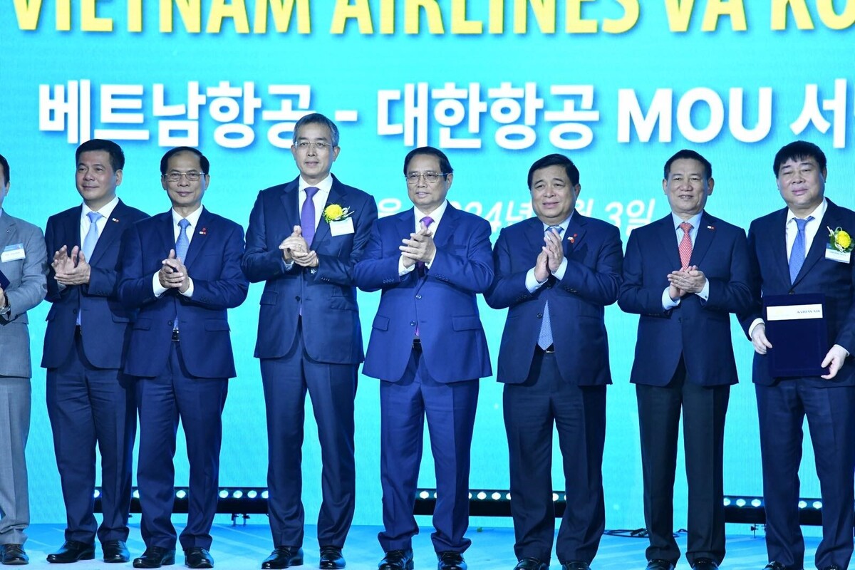 Phát biểu tại sự kiện, Thủ tướng Phạm Minh Chính đánh giá cao vai trò, nỗ lực của Vietnam Airlines trong 30 năm qua khi trở thành cầu nối thúc đẩy quan hệ giữa Việt Nam và Hàn Quốc.