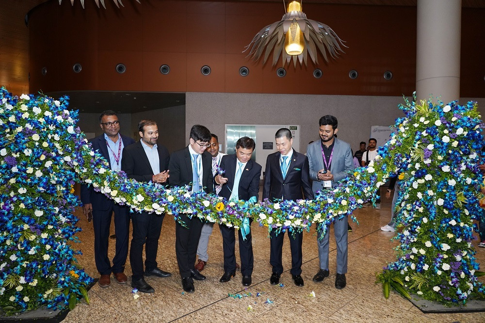 Ông Hoàng Tùng, Tổng lãnh sự Việt Nam tại Mumbai, cùng đại diện lãnh đạo Vietnam Airlines và sân bay Chhatrapati Shivaji Maharaj thực hiện nghi lễ khai trương.