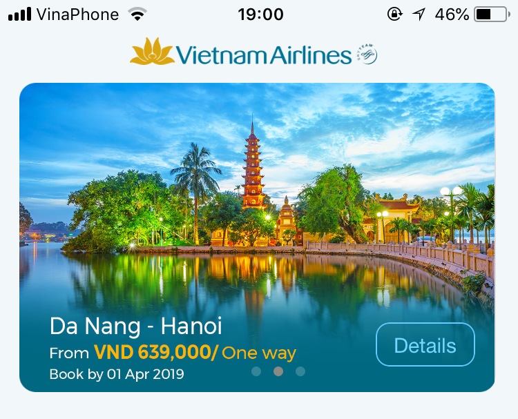 Nhằm đem đến cho khách hàng cơ hội trải nghiệm dịch vụ chất lượng 4 sao với chi phí tiết kiệm, Vietnam Airlines ưu tiên quảng bá, cập nhật các chương trình ưu đãi mới nhất như giá vé khuyến mãi, các gói vé máy bay và khách sạn VNA Holidays ngay trên trang chủ của ứng dụng.