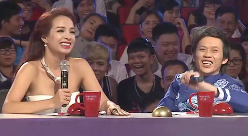 Sau màn trình diễn này, giám khảo Hoài Linh trêu chọc Thúy Hạnh: 'Tôi thấy cô này là la to nhất. Tôi bảo rồi, thế nào cô cũng vật vã mà'.