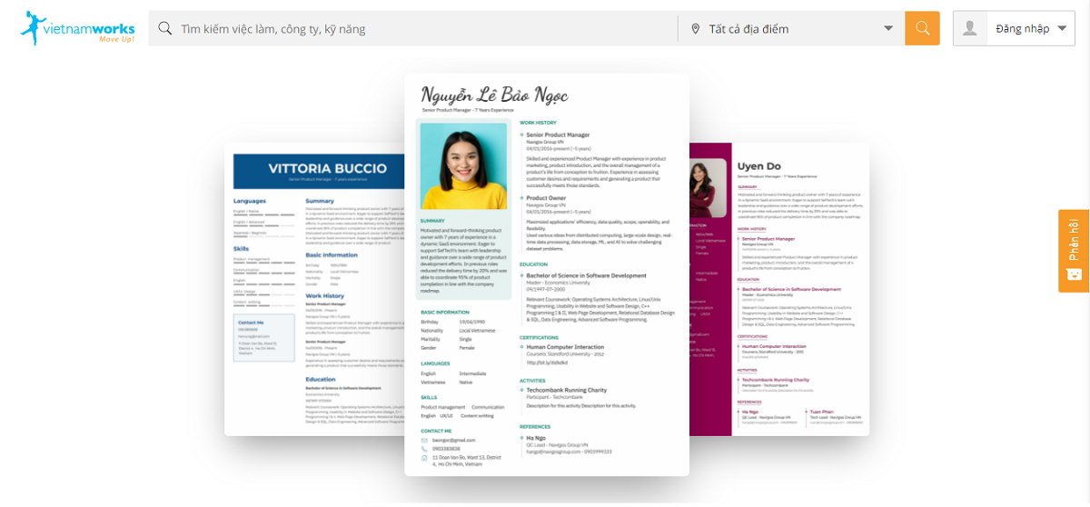 Không chỉ dừng lại ở đó, trình tạo mẫu CV xin việc online của VietnamWorks tại WowCV.com được tích hợp với kỹ thuật và công nghệ tiên tiến, trong 5 phút sáng tạo hoặc sử dụng các mẫu CV đa dạng màu sắc, thiết kế, phù hợp với nhiều vị trí và ngành nghề là ứng viên đã có thể tạo ra một mẫu CV ưng ý cho riêng mình.