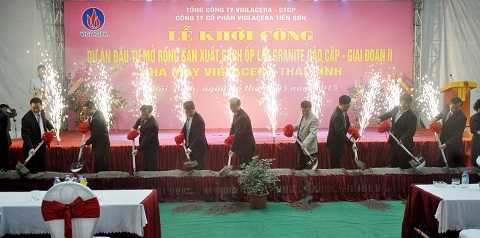 (VTC News) - Sáng 6/3/2015, Tổng công ty Viglacera – CTCP tổ chức Lễ khởi công dự án “Đầu tư mở rộng sản xuất Gạch ốp lát Granite cao cấp giai đoạn 2 – Nhà máy Viglacera Thái Bình” tại KCN Tiền Hải – Đông Lâm – Tiền Hải – Thái Bình.