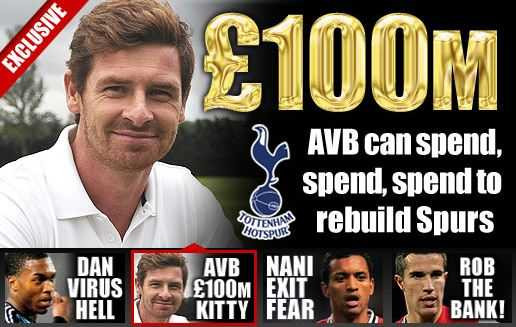 Như vậy, nếu mọi chuyện diễn ra đúng theo dự kiến, Villas-Boas sẽ có xấp xỉ 100 triệu bảng để thay đổi bộ mặt Tottenham trước thềm mùa giải 2012-13.