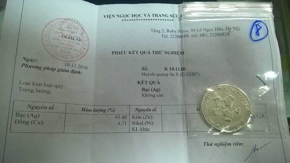 Thông tin về sản phẩm này ghi rõ “Sản phẩm được làm bằng bạc 92,5% của Tổng công ty Khoáng sản-TKV khai thác tại tổ hợp Đồng Sin Quyền Lào Cai. Đơn vị thiết kế và sản xuất, Chi nhánh đá quý Việt Nhật-Vimico thuộc Tổng công ty Khoáng sản – TKV. Sản phẩm được bảo hành trong thời gian 06 tháng kể từ ngày sản xuất.