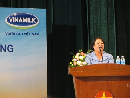 | Bà Bùi Thị Hương – Giám đốc Đối ngoại Vinamilk chia sẻ với người tiêu dùng Khánh Hoà về công ty |
