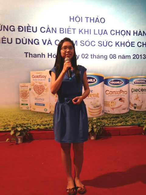 | Bà Bùi Thị Hương – Giám Đốc Đối Ngoại Vinamilk chia sẻ thông tin về công ty với người tiêu dùng tại Thanh Hóa |