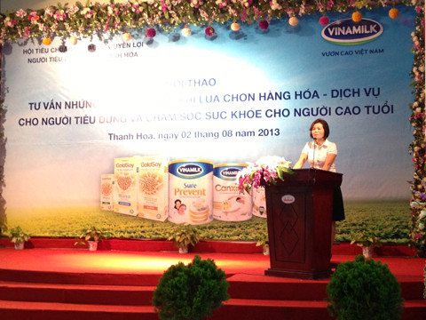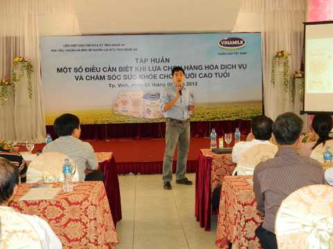 Với mục tiêu là chuyên gia dinh dưỡng chăm sóc sức khỏe toàn diện cho người cao tuổi, trong 2 ngày 1 và 2.8.2013, tại Nghệ An và Thanh Hóa, Vinamilk phối hợp với Hội Bảo vệ Quyền lợi Người tiêu dùng (BVQLNTD) hai tỉnh tổ chức Hội thảo tập huấn, tư vấn cho người tiêu dùng “Một số điều cần biết khi lựa chọn hàng hoá, dịch vụ” và tư vấn chăm sóc sức khoẻ người cao tuổi.