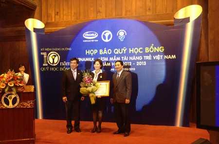 (VTC News) - Hôm nay ngày 12/3, tại Khu di tích Văn Miếu Quốc Tử Giám - Hà Nội, Bộ Giáo dục và Đào tạo đã công bố chương trình Quỹ học bổng "Vinamilk – Ươm mầm tài năng trẻ Việt Nam" năm học 2012 – 2013 và kỷ niệm chặng đường 10 năm hành trình của Quỹ học bổng.