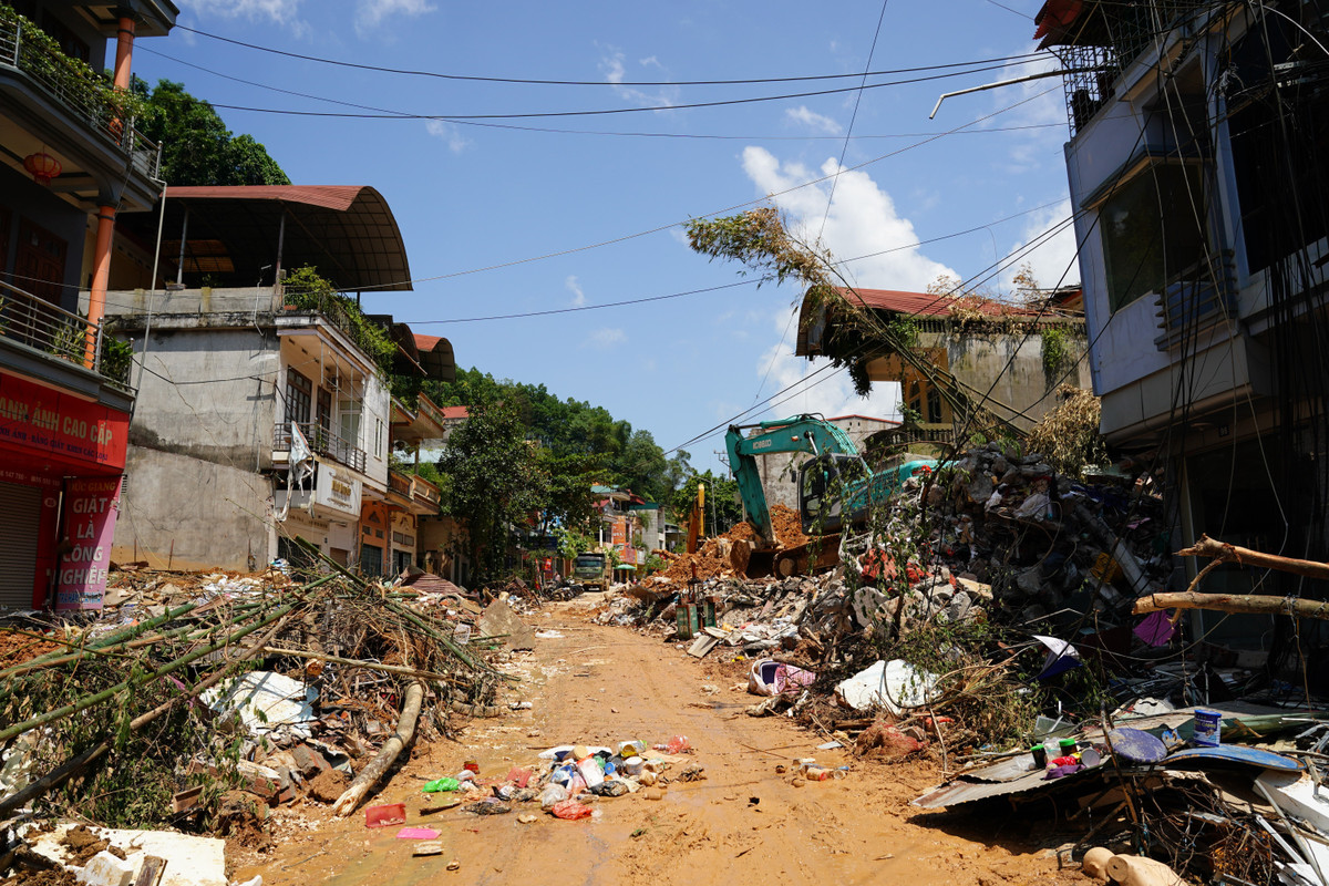 Khu vực chợ trung tâm huyện Trấn Yên (tỉnh Yên Bái) bị nước ngập lên đến gần 2m, rác bùn lên đến hơn 1m. “Ngày nào cũng có đến vài trăm người dọn dẹp, cào quét, kéo bùn ra. Làm liên tục 6-7 ngày, đường mới được như thế này, có nơi bùn vẫn ngập cao đến 20-30cm”, bà Nguyễn Thị Loan (ngụ đường Sông Thao, huyện Trấn Yên) chỉ con đường quanh chợ và nói. Bà Loan kể thêm: “Cả đời tôi, chưa bao giờ thấy lũ lớn, ngập sâu như đợt này. Gần sông, ở phía trong có 2 nhà chỉ có cụ già hơn 70 tuổi và hơn 80 tuổi ở một mình, hôm nhà ngập cao lên tầng 2, ở trong không ra được, vẫy tay gọi mọi người đến cứu”.