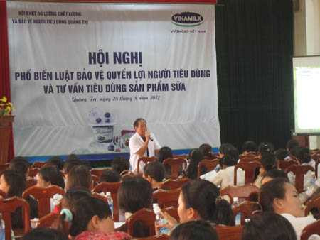 (VTC News) - Tại TP. Đông Hà (Quảng Trị), Công ty Cổ phần sữa Việt Nam - Vinamilk và Hội Tiêu chuẩn và Bảo vệ người tiêu dùng (Hội TC & BVNTD) Quảng Trị đã phối hợp tổ chức buổi Hội nghị phổ biến luật bảo vệ người tiêu dùng và tư vấn cách dùng sản phẩm sữa chua Vinamilk.
