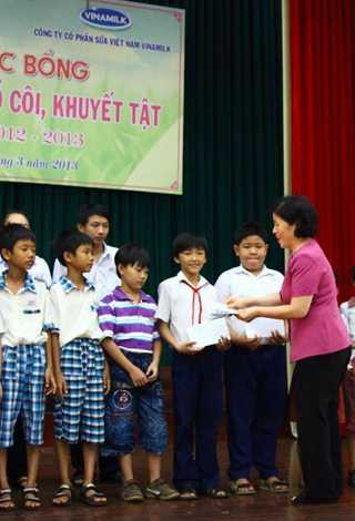 Với tinh thần tương thân tương ái, và chia sẻ với những khó khăn cùng những em học sinh, ngày 3.3.2013 đại diện công ty Vinamilk đã phối hợp với Hội nạn nhân chất độc da cam/ dioxin Việt Nam (tỉnh hội Bến Tre) trực tiếp đến Bến Tre trao học bổng cho hơn 150 em học sinh mồ côi, khuyết tật, học sinh nghèo vượt khó, gia đình có người nhiễm chất độc hóa học, vì hoàn cảnh nghèo luôn có nguy cơ bỏ học nếu không được xã hội tiếp sức kịp thời.