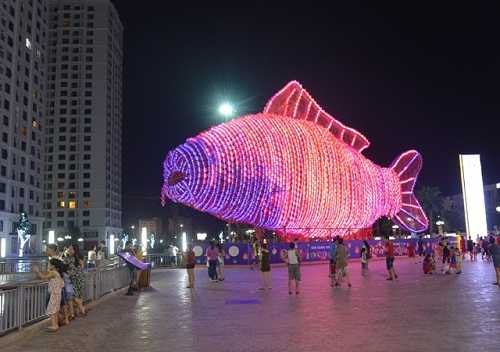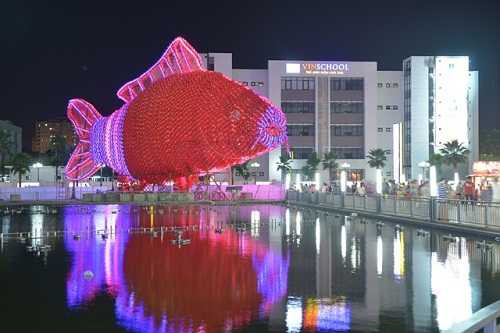 Gần 100 nghệ nhân tài hoa đã thi công liên tục từ ngày 1.8 - 18.8.2014 để hoàn thiện Đèn lồng cá chép khổng lồ, đặt tại quảng trường trước TTTM VMM Times City. Với chiều cao 15 m, dài 32 m, kết từ hơn 5.000 đèn lồng nhỏ, bên trong là 5.000 bóng đèn led lung linh, “tuyệt phẩm ánh sáng” này đã xác lập kỷ lục “Đèn lồng lớn nhất Việt Nam”. Điểm độc đáo là hệ thống đèn led này được lập trình thông minh theo từng bản nhạc và phát sáng tương ứng với các giai điệu vui tươi, rộn ràng không khí lễ hội.