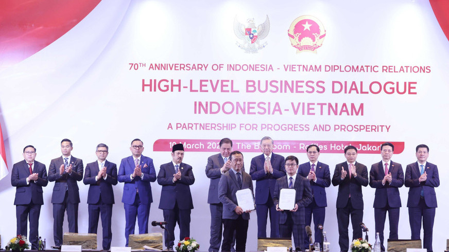 Nhân dịp này, Tổng Bí thư Tô Lâm và các đại biểu dự Tọa đàm đã chứng kiến Bản ghi nhớ giữa VinFast và Ngân hàng Negara Indonesia hợp tác chiến lược toàn diện về các giải pháp chuyển đổi xanh và các nguồn tài chính xanh dài hạn; Bản ghi nhớ giữa SOVICO và Ciputra Group về hợp tác phát triển các dự án bất động sản, khu đô thị thông minh, khu công nghiệp, khu hậu cần logistics và thương mại dịch vụ tại Việt Nam và Indonesia.