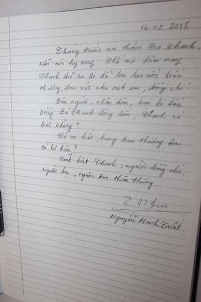 “Tháng trước ra thăm Bá Thanh, vẫn còn hy vọng. Thế mà hôm nay Thanh đã ra đi để lại bao nỗi tiếc thương, đau xót cho anh em đồng chí. Bên ngoài nhân dân, bạn bè đến viếng Bá Thanh đông lắm. Thanh có biết không?
