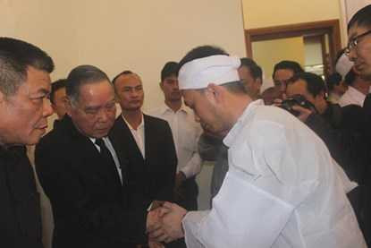 | Ông Nguyễn Bá Cảnh (con trai ông Thanh) bắt tay cảm ơn ông Phan Văn Khải. |