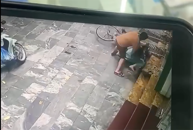 Người phụ nữ bị chồng cũ dùng hung khí đâm gục tại vỉa hè ở TP Phúc Yên, Vĩnh Phúc vào chiều 27/7. (Ảnh chụp màn hình)
