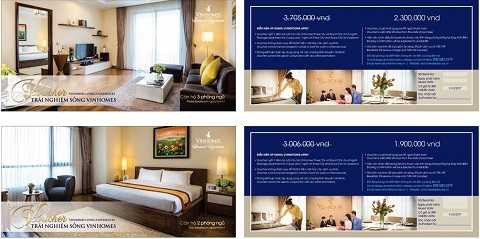 Theo đó, khách hàng mua voucher nghỉ 2 ngày 1 đêm tại hệ thống căn hộ cho thuê Vinhomes Times City và Vinhomes Royal City từ 15/3/2016 sẽ được áp dụng giá khuyến mãi đặc biệt chỉ còn 1.900.000 vnd/đêm cho căn hộ 2 phòng ngủ áp dụng cho 4 người lớn và 2.300.000 vnd/đêm cho căn hộ 3 phòng ngủ áp dụng cho 5 người lớn. Chi phí đã bao gồm ăn sáng, bể bơi bốn mùa, sân chơi thể thao…, thuế và phí dịch vụ.