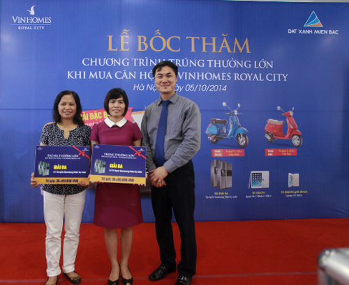 Bên cạnh giải đặc biệt, Công ty Vinhomes cũng đã trao 1 giải nhất là một xe máy Vespa PX 125cc nhập khẩu, 1 giải nhì là xe máy Vespa LX 125cc sản xuất tại Việt Nam. Ngoài ra, công ty cũng trao 2 giải ba là Tủ lạnh Side by Side Samsung; 3 giải tư và 10 giải khuyến khích là Ipad 128GB và Iphone 5S. Tổng trị giá các giải thưởng lên đến hàng tỷ đồng đã thu hút hàng trăm khách hàng tham dự.