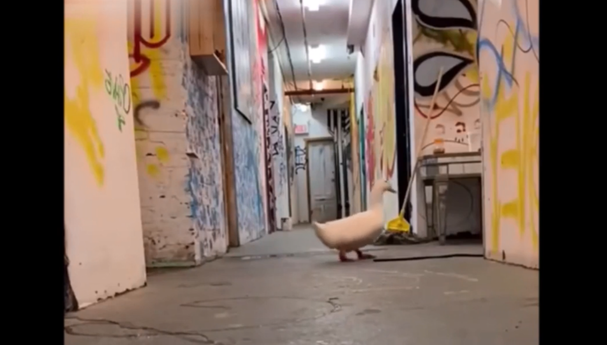 Đang tung tăng đi dạo trong nhà thì đèn tắt, chú vịt cuống cuồng bỏ chạy vì sợ hãi.
